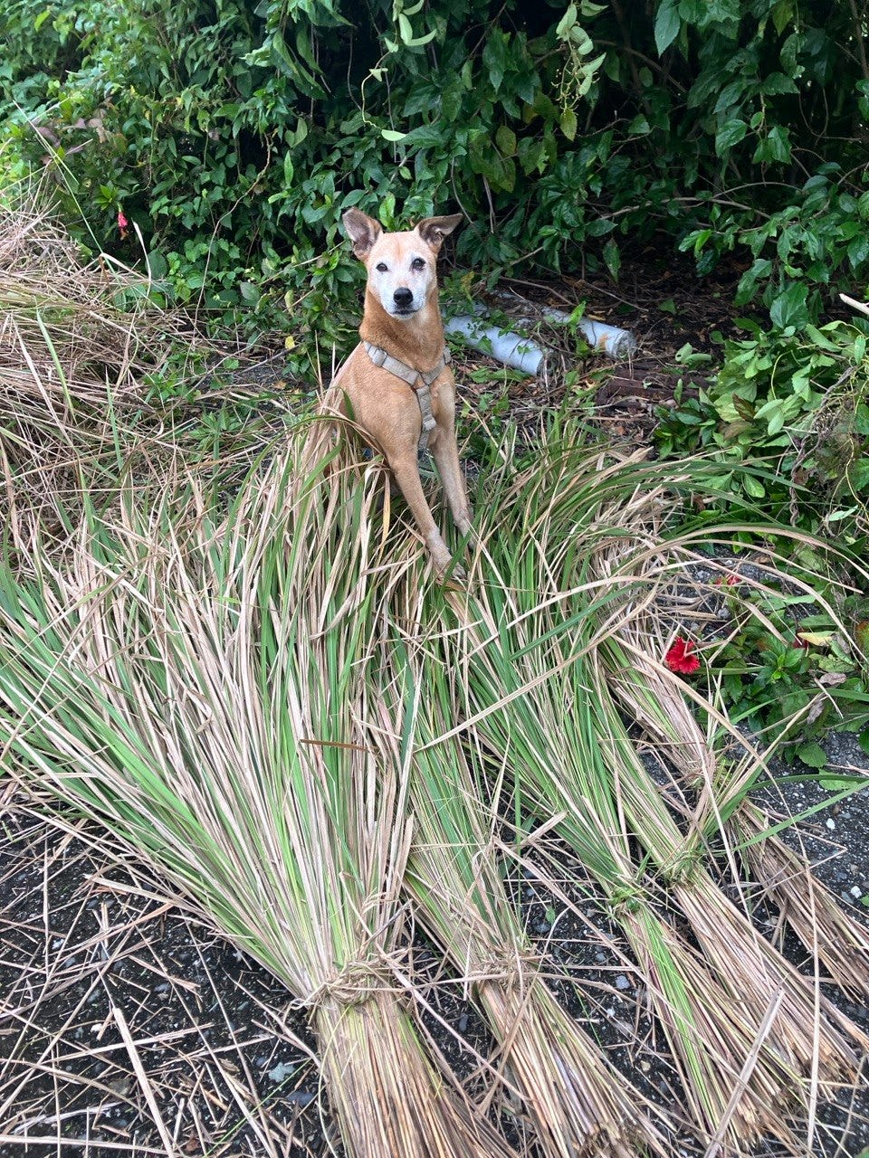 我是第一次收成茅草。大苑說其實不用整理得很乾淨,因為收成後的下一步驟是曬乾,乾了後,不好的、舊的草和其他雜草很容易就能挑出來。但第一次總是會很比較龜毛,有點強迫自己把茅草整理地乾乾淨淨,還是很有成就感。