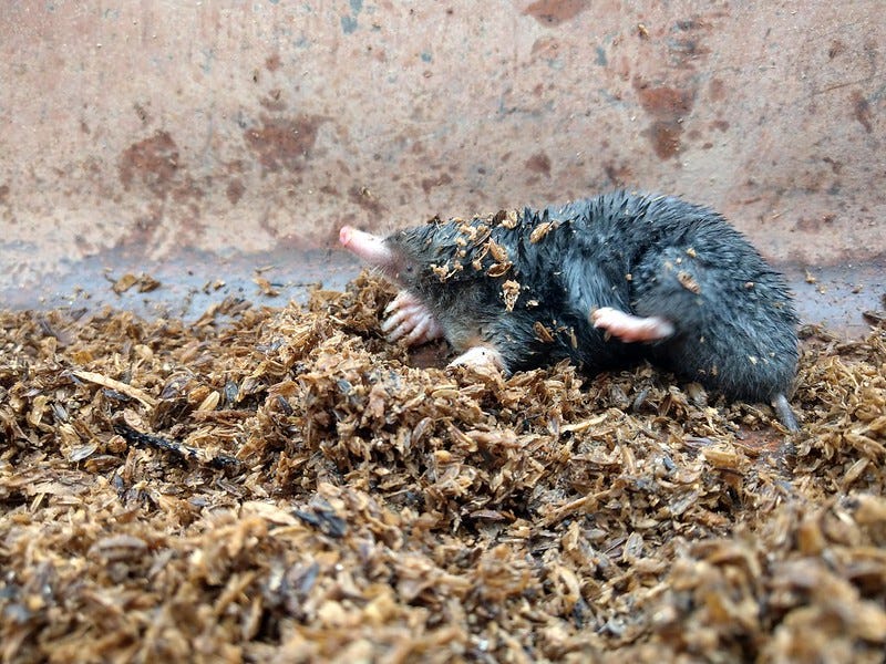 雖然有網站寫鼴鼠會吃根莖類作為食物,但我認為這應該是錯誤的資訊。鼴鼠挖的地下隧道系統會間接傷害到根莖系統,也間接造成塊根作物的農損。就像雖然我發現有些樹薯被吃掉只剩下皮,沒有肉,但我想那可能是被其他昆蟲(或囓齒動物?)吃的,而塊根附近的地下昆蟲又能特別吸引鼴鼠,才導致這樣的狀況。